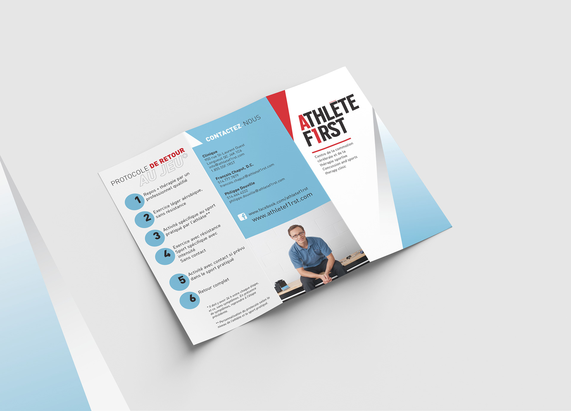 Conception graphique de dépliant pour Athlète First,