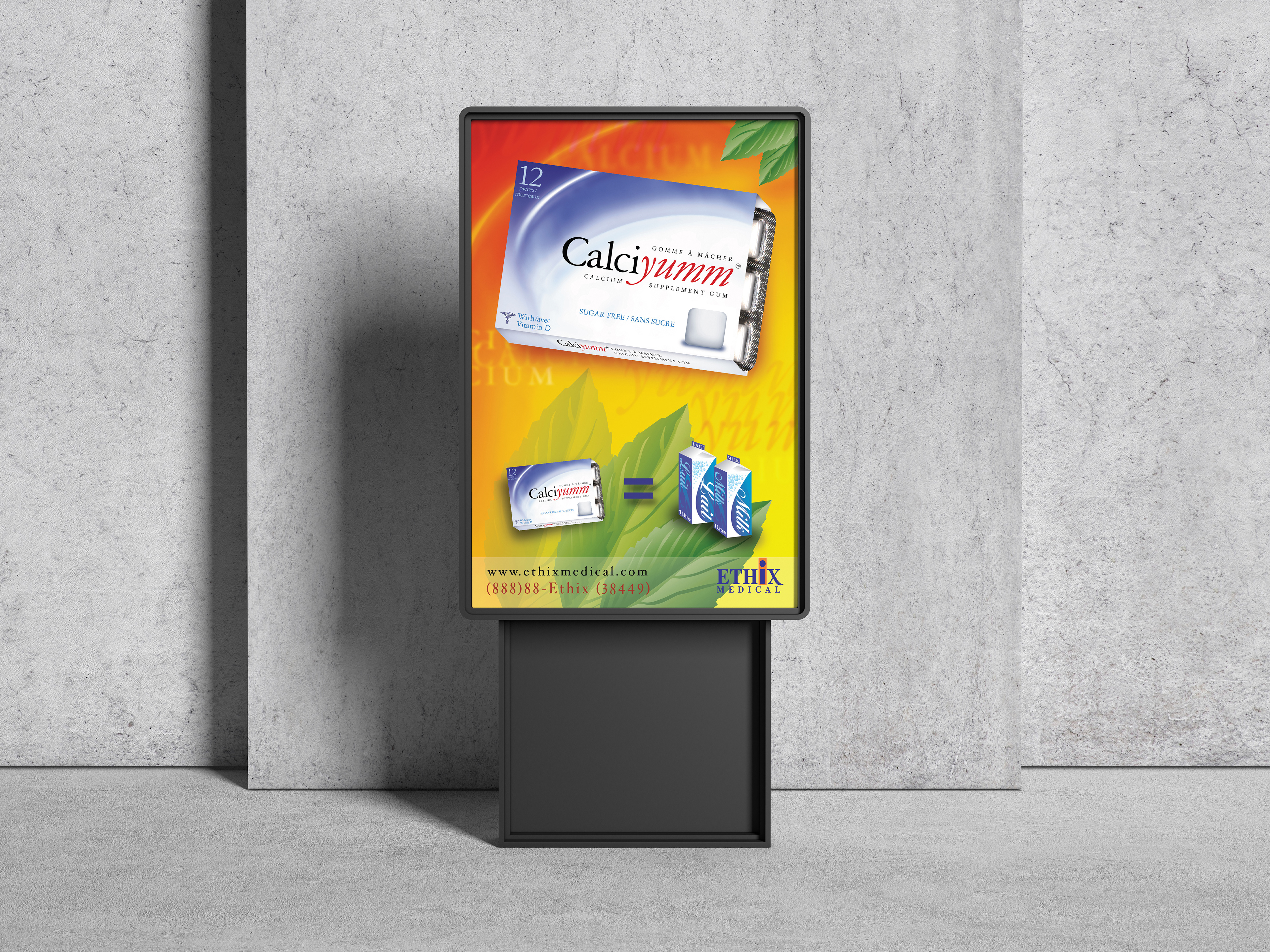 Conception visuelle d'affiche promotionnelle de produits pharmaceutiques pour Ethix Medical.