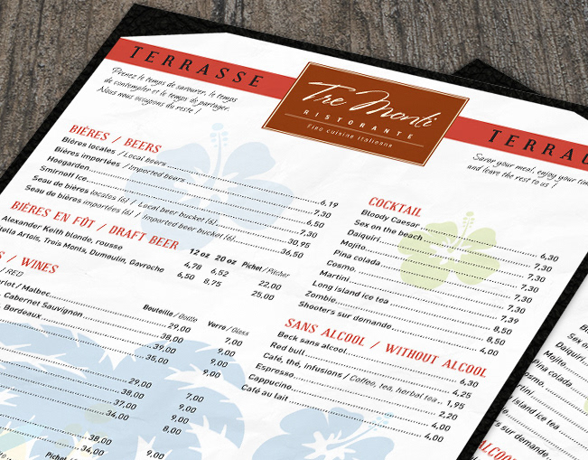 DESIGN GRAPHIQUE Menu restaurant Tre Monti
